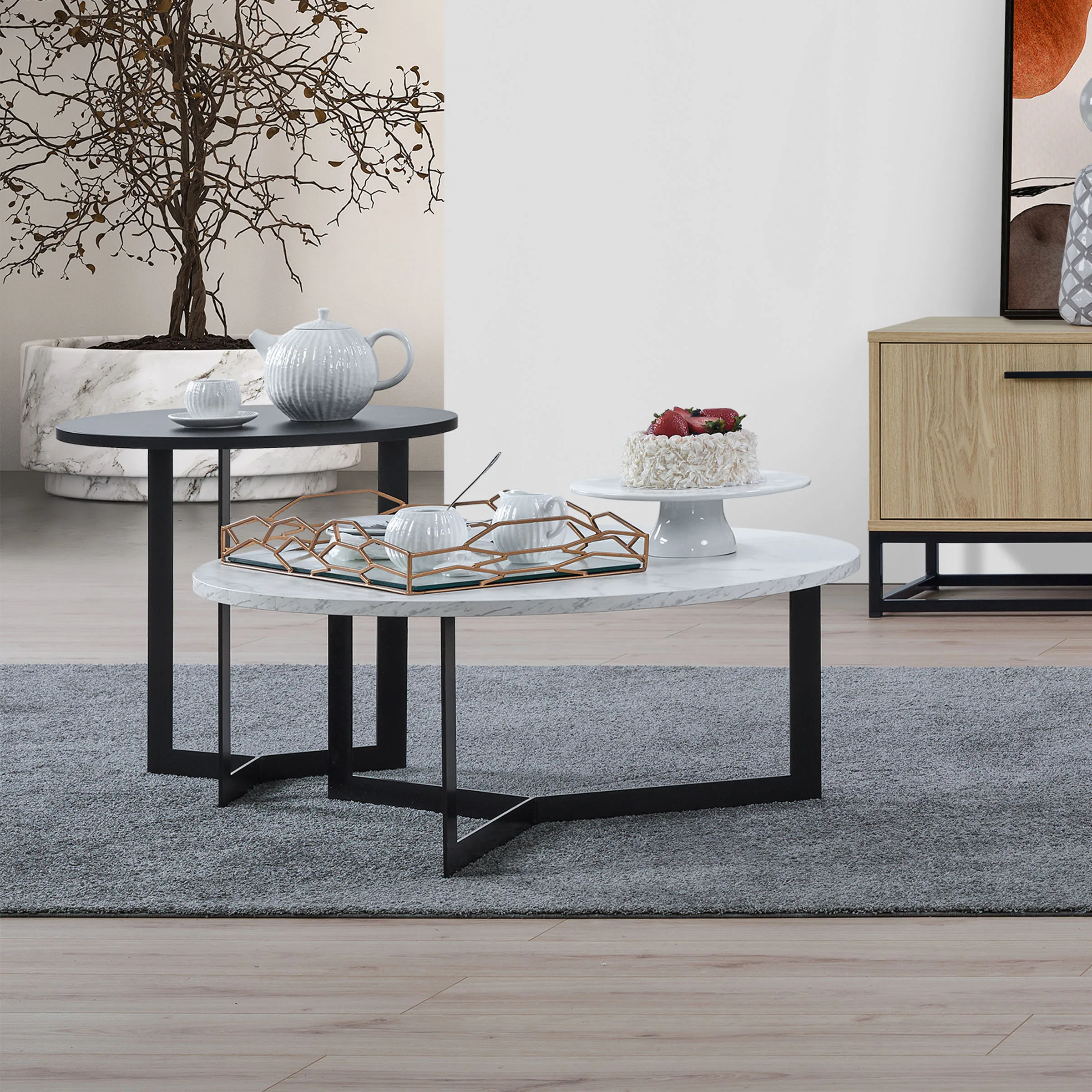 - Mesa de apoio com 80 cm de diâmetro e personalidade própria para ser usada sozinha.